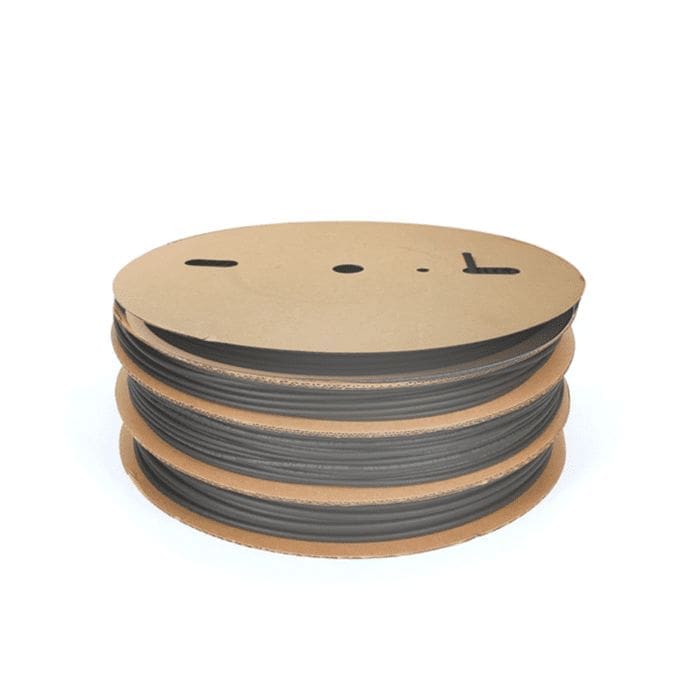 This thin wall heat shrink tubing is used in many wiring and cable management applications. It has a shrink ratio of 4:1 and is available in Black. Shrunk/Recovered ID is 1.6mm. Sold in rolls of 100m. Minimum order quantity is 1 roll.